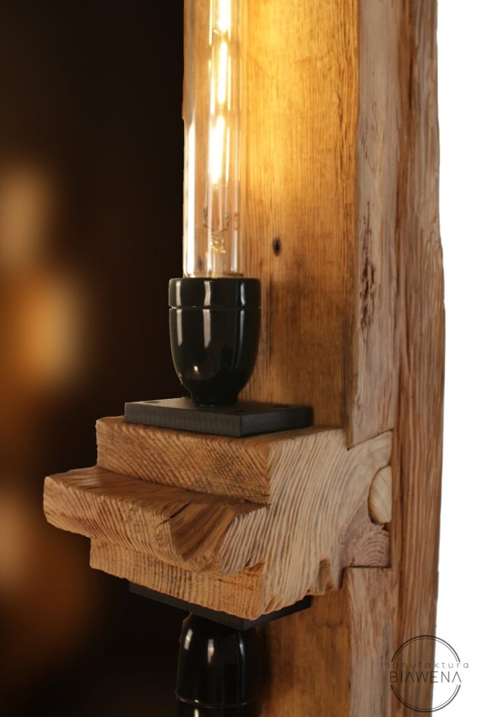 Lustro LOG LIGHT to propozycja dla tych, którzy cenią wyjątkowy design i praktyczne rozwiązania. Wykonane ze starego drewna z upcyklingu oraz płyty HDF, każde lustro ma unikalny charakter, który podkreśla naturalne piękno wnętrza. Krystalicznie czyste odbicie, zapewnione przez wysokiej jakości lustro OptiWhite, nadaje przestrzeni głębi i podkreśla jej wyjątkowy styl. Precyzyjne wykonanie i solidne materiały gwarantują, że lustro LOG LIGHT będzie zarówno dekoracyjnym akcentem, jak i trwałym elementem wyposażenia.