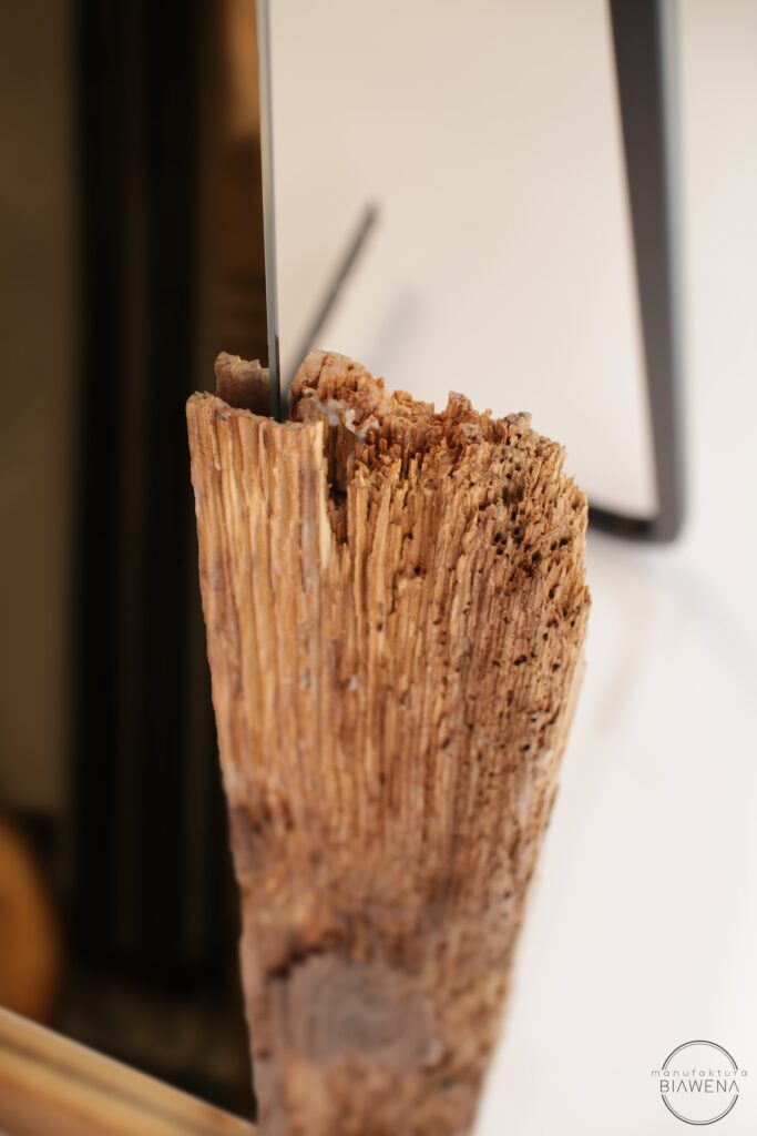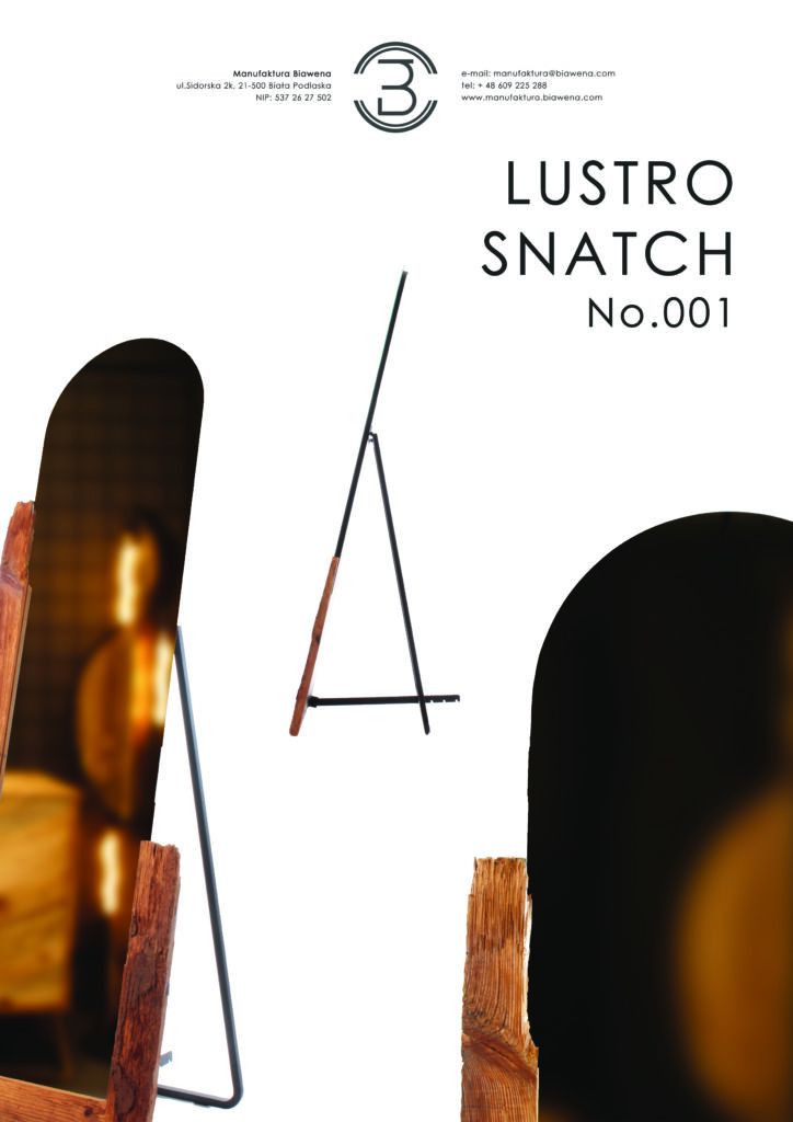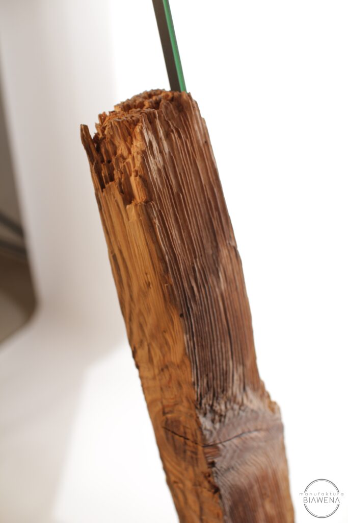 Wykonane z najwyższej jakości materiałów, lustro SNATCH zachwyca trwałością i estetyką. Stare drewno z upcyklingu, płyta MDF oraz szkło OptiWhite zapewniają niezrównaną przejrzystość odbić, podkreślając naturalne piękno wnętrza. Solidna stalowa konstrukcja o profilu 20×20 mm oraz podstawa z blachy 3 mm, obie malowane i lakierowane proszkowo, gwarantują stabilność oraz długowieczność. Dzięki temu lustro pozostaje w doskonałym stanie przez lata, nie tracąc nic ze swojego uroku.