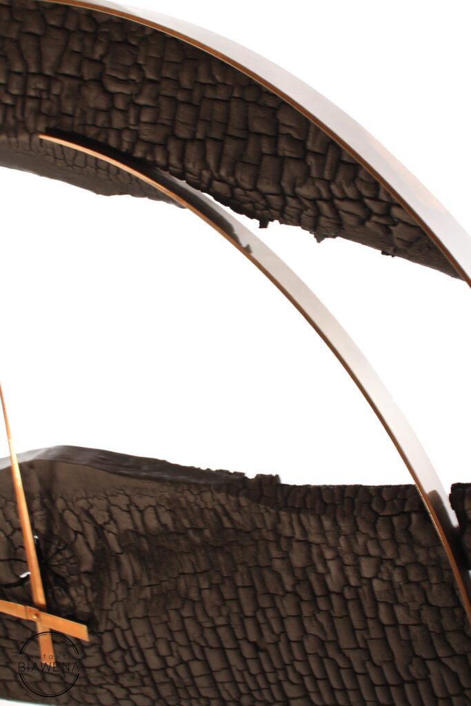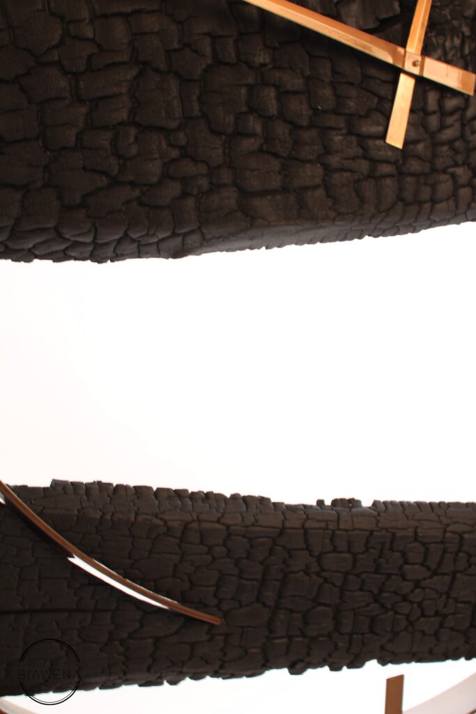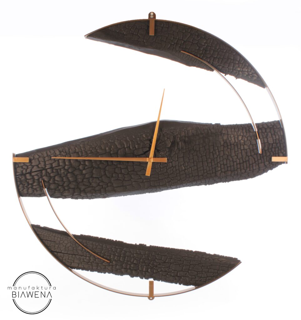 Wykonany z palonego drewna topolowego oraz malowanej i lakierowanej proszkowo obręczy, zegar CUT łączy w sobie elegancję i trwałość. Solidna konstrukcja zapewnia nie tylko estetyczny wygląd, ale także wytrzymałość na długie lata. Cichy, pływający mechanizm, zasilany baterią 1xAA, gwarantuje precyzyjne odmierzanie czasu bez irytującego tykania, dzięki czemu zegar doskonale sprawdzi się w sypialni, salonie czy biurze. Aluminiowe wskazówki, malowane proszkowo, dodają mu nowoczesnego charakteru i subtelnego kontrastu, podkreślając jego unikalny design.
