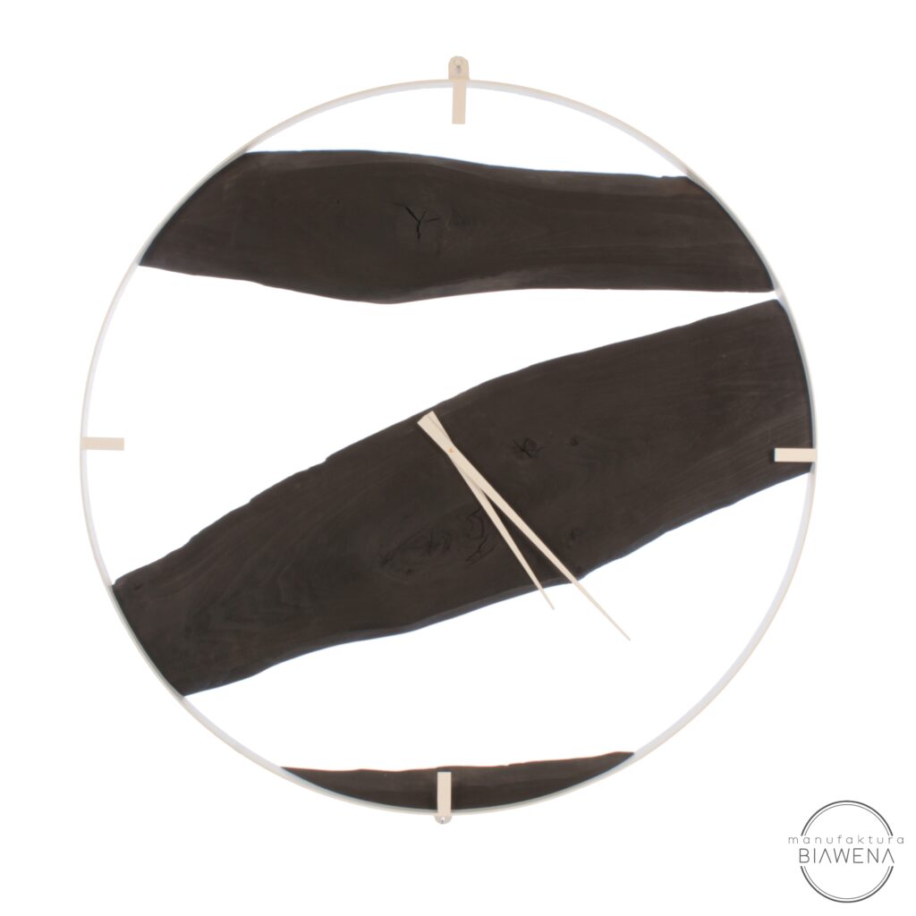 Najwyższa jakość materiałów użytych do produkcji zegara NATURE zapewnia niezrównaną trwałość i elegancję. Blacha o grubości 5 mm i 3 mm, malowana oraz lakierowana proszkowo, w połączeniu z naturalnym drewnem, tworzy solidną konstrukcję o wyrafinowanym wyglądzie. Cichy, pływający mechanizm zasilany baterią 1xAA gwarantuje precyzyjne odmierzanie czasu bez irytującego tykania, dzięki czemu zegar idealnie sprawdzi się w sypialni, salonie czy biurze. Aluminiowe wskazówki, malowane proszkowo, dodają mu nowoczesnego charakteru, tworząc stylowe zestawienie z drewnianym korpusem.